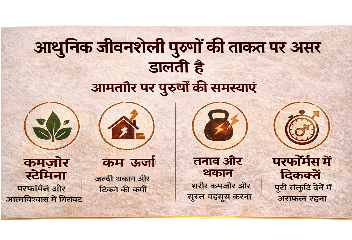 आज के समय में पुरुषों की यौन समस्याएँ तेजी से बढ़ रही हैं — जैसे कमजोरी, जल्दी ढीलापन, स्टैमिना की कमी और आत्मविश्वास का गिरना।